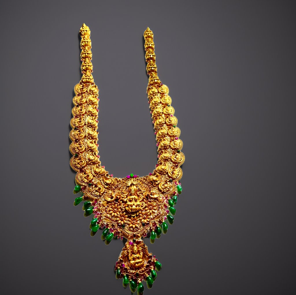 This is a necklace that remembers when jewellery was scripture, not style. When each curve was inscribed with intent, and each gem placed like syllables in a hymn.